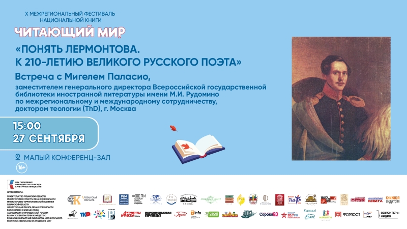 В год 210-летия автора «Героя нашего времени», на пороге его дня рождения (15 октября) Мигель Паласио в ходе встречи с гостями фестиваля «Читающий мир» попытается разгадать тайну Лермонтова и для этого обратится к таким темам, как реальная и мифическая география жизни поэта, его семейная драма, созданная для общества маска, принадлежность к тайному обществу, а также, конечно, роль женщин в судьбе Михаила Юрьевича и борьба между Ангелом и Демоном в его душе.
