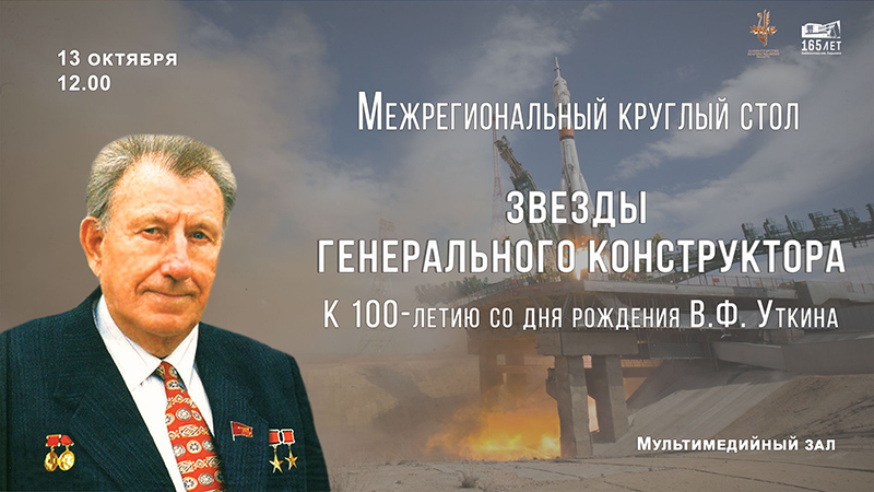 13 октября в 12:00 в библиотеке имени Горького состоится межрегиональный круглый стол «Звезды Генерального конструктора», посвященный 100-летию со дня рождения выдающегося ученого, легендарного человека, генерального конструктора ракетно-космической техники, академика, дважды Героя Социалистического Труда, лауреата Ленинской и Государственной премий СССР, уроженца Рязанской земли – Владимира Федоровича Уткина, одного из создателей ракетно-ядерного щита нашей Родины.