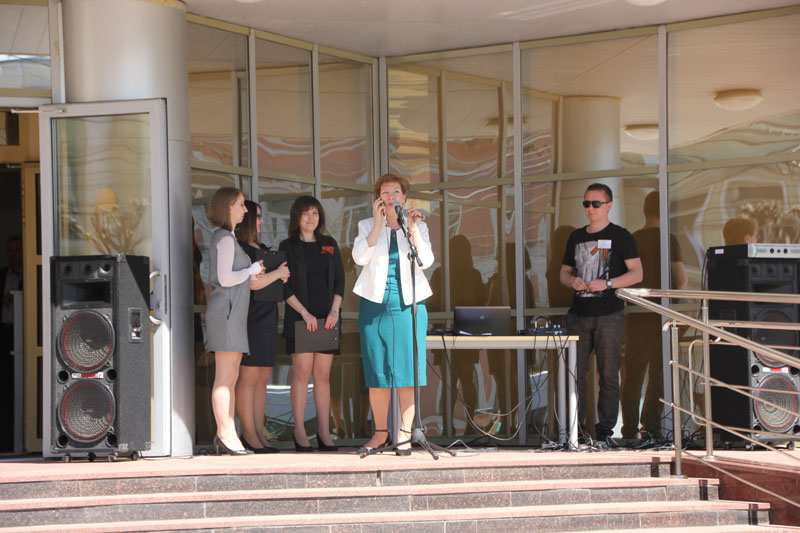 Директор библиотеки Наталья Николаевна Гришина открыла акцию прямым включением ветерана Великой Отечественной войны, почетного гражданина города Рязани, поэта Бориса Ивановича Жаворонкова, который по громкой телефонной связи прочитал свои стихи и поздравил присутствующих.