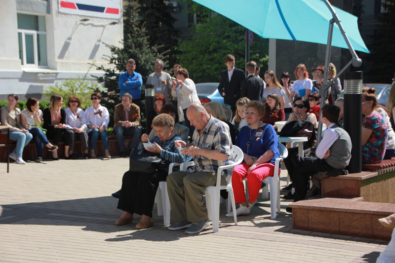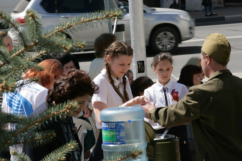 Все желающие смогли попробовать настоящую солдатскую кашу на военно-полевой кухне библиосквера.