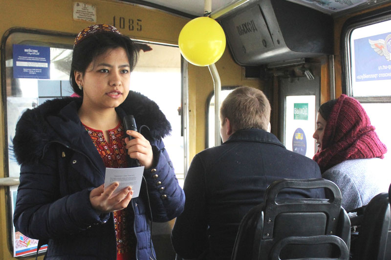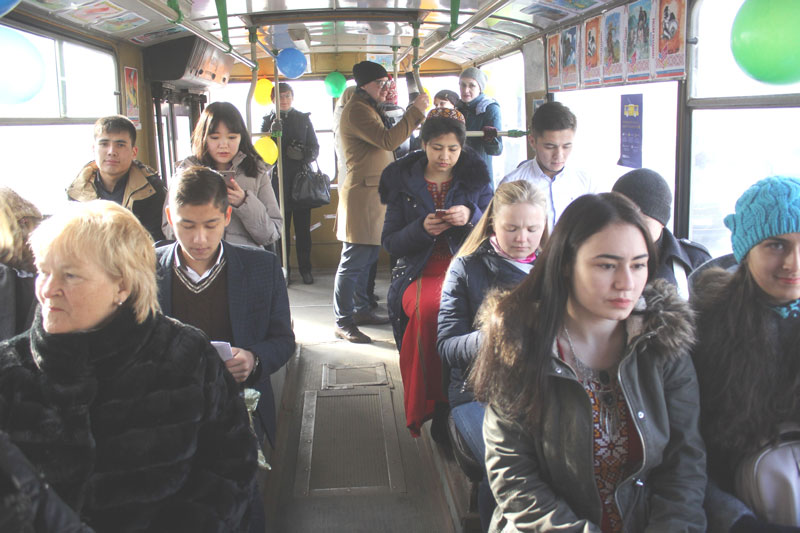 Проезд во время акции был абсолютно бесплатным, а вместо кондуктора горожан встречали молодые люди, дарившие теплые улыбки, закладки и красочные открытки.