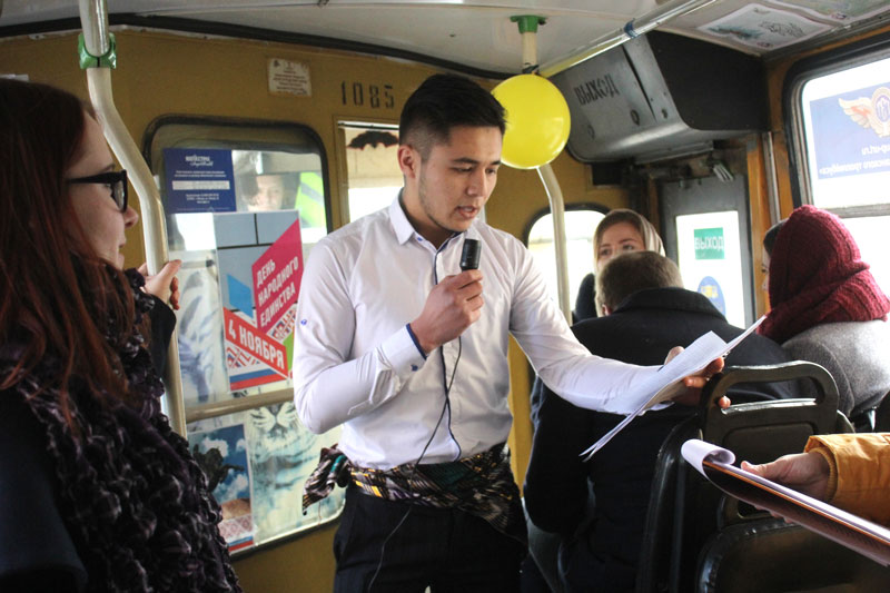 Троллейбус маршрута № 5 на несколько часов превратился в музыкально-поэтическую площадку, на которой молодые библиотекари, студенты, школьники, актеры театра «Переход», представители национальных городских и областных общественных объединений рассказывали пассажирам о фольклоре, культуре и традициях народов России. В салоне троллейбуса звучали стихи, отрывки из народных эпосов и сказок.