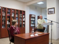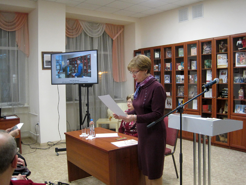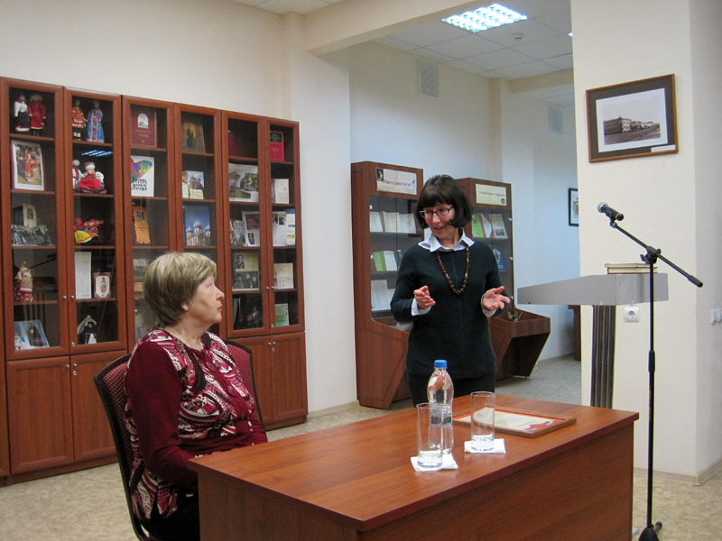 В.В. Безуглова, долгие годы руководившая краеведческим отделом «Горьковки», напомнила о начале сотрудничества библиотеки и архива, об инициаторе установления связей между учреждениями – Александре Михайловне Сторожевой, работавшей заместителем директора ГАРО, бывшей активным участником многих издательских проектов, например, «Рязанской энциклопедии». Теплые воспоминания сохранились в сердцах краеведов об Андрее Николаевиче Мельнике, члене Русского географического и Рязанского исторического обществ, гидроархеологе, авторе более 100 работ, работавшем в ГАРО в 1986–2006 гг.