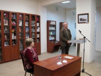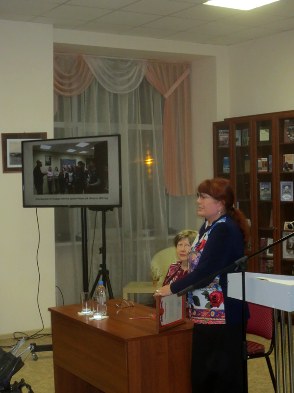 Директор ГАРО Татьяна Петровна Синельникова рассказала о тесных связях и формах сотрудничества ГАРО и библиотеки, передала председателю клуба краеведов-исследователей благодарственное письмо, подписанное начальником Главного архивного управления Рязанской области Александрой Викторовной Перехватовой. В письме, в частности, библиотекарям выражается признательность «за многолетнее сотрудничество с архивистами региона и творческий подход в использовании архивных материалов по истории родного Рязанского края».