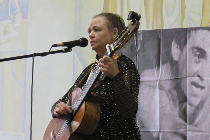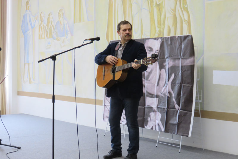 У каждого свой Высоцкий, свои предпочтения, свои совпадения души. Участники концертной программы исполнили свои любимые песни и стихи. Выступили рязанские барды Алексей Фошин, Владимир Рябов, Андрей Башкарев, Анатолий Ивахин, Алексей Заболотский, Валентина Строгова. Под аккомпанемент гитары исповедально, трепетно, проникновенно, с глубоким чувством звучали строки, наполненные особой энергией, ощущением живого дыхания жизни. Разной тематики и направленности они раскрыли большой срез творческого наследия Высоцкого и вызвали море эмоций. На встрече прозвучали: «Баллада о любви», «Охота на волков», «Кони привередливые», «На братских могилах», «На нейтральной полосе», «Еще не вечер», «Агент 007», «В желтой жаркой Африке», «Гимнастика» и другие.
