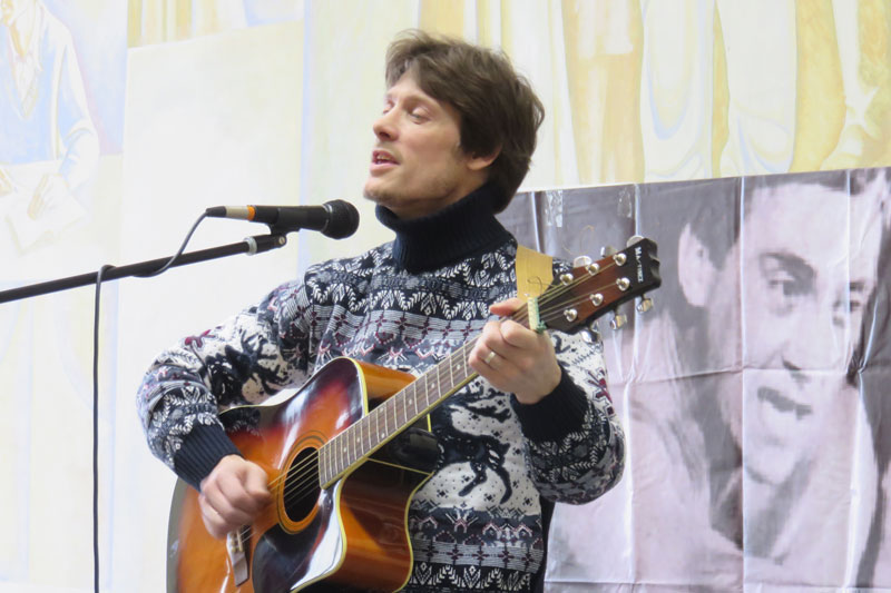 В большом конференц-зале библиотеки едва хватило мест желающим прикоснуться к творчеству Владимира Высоцкого. Любовь к его стихам и песням объединила и старшее поколение, и молодежь. Организаторами вечера стали: многолетний вдохновитель международного фестиваля авторский песни «Зимний лимон» Игорь (Гарик) Лимонов и руководитель клуба авторский песни «Ваганты» Валентина Строгова. Удивительно теплая, творческая атмосфера царила на сцене и в зале.