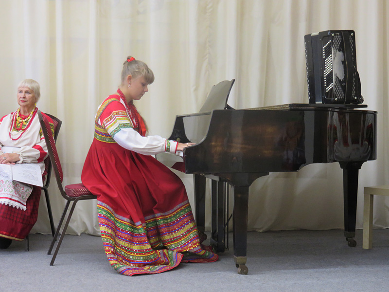 Прозвучали песни «Мельница», «Зажглась звезда далекая», русские народные и казачьи песни – «Перевоз Дуня держала», «Как хотела меня мать да за первого отдать…», «По улице мостовой», «Меж крутых бережков», «Трава моя, трава», «Как за Доном», частушки «Черны глазки» и другие. Конечно, присутствовала и есенинская тематика. Ученица ДШИ № 7 г. Рязани Валерия Родина исполнила песню «Плясунья» под аккомпанемент гуслей и другие произведения. Завершила программу звонкая русская народная песня «Сени».