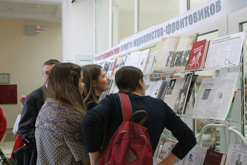 Вниманию участников торжественного мероприятия была предложена книжно-иллюстративная выставка, посвященная памяти журналистов-фронтовиков.