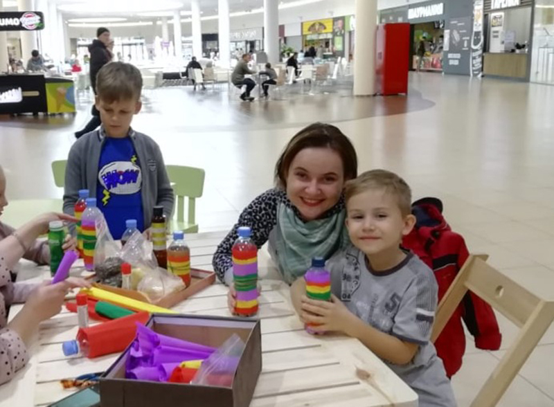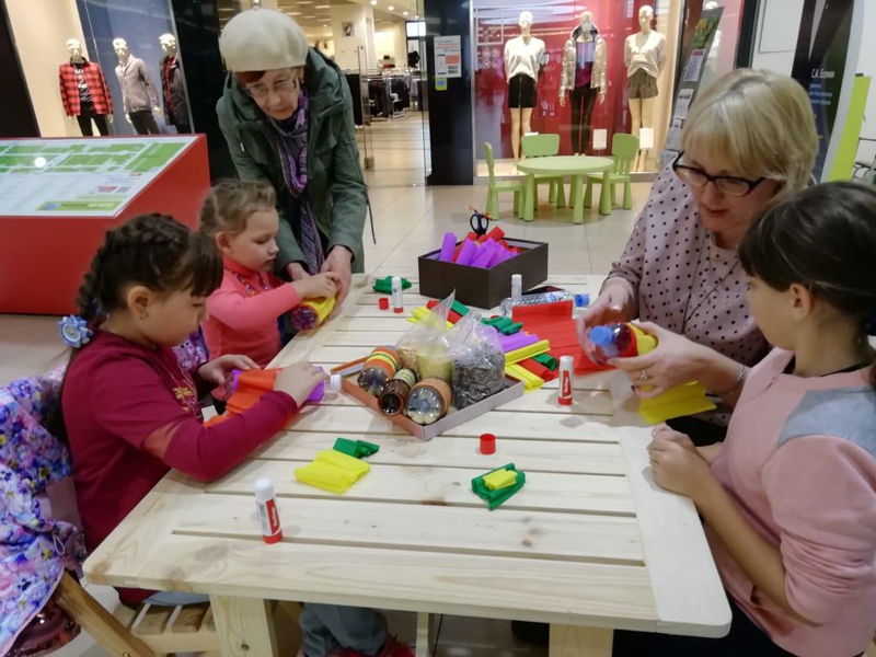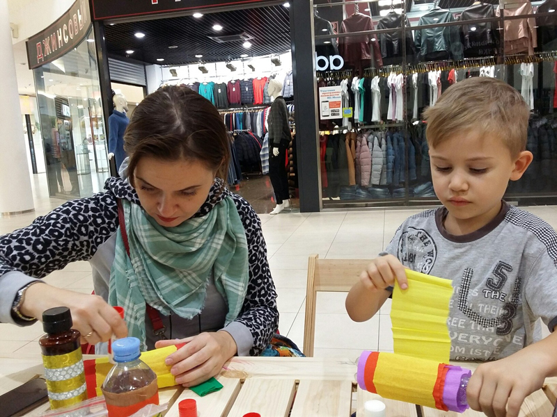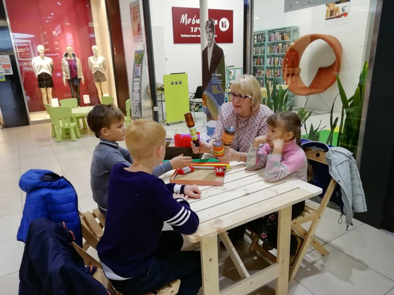 В минувшую субботу сотрудники Центра литературы по искусству продолжили серию мастер-классов в мобильной точке библиотеки в ТРЦ «М5 Молл». Для всех посетителей торгового центра работал наш «Музыкальный салон», в котором любой желающий мог своими руками сделать маракасы.