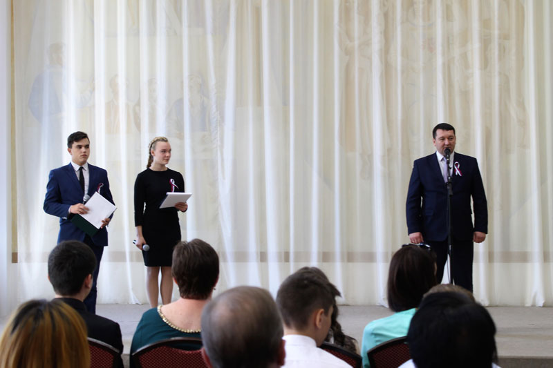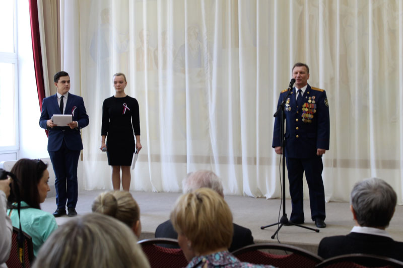 На мероприятии присутствовали: Алексей Александрович Зимин – начальник управления образования и молодежной политики администрации города Рязани, Анжелика Владимировна Евдокимова – старший помощник руководителя следственного управления Следственного комитета РФ по Рязанской области, Алексей Иванович Рубцов – заместитель председателя регионального отделения Всероссийского общественного движения ветеранов локальных войн и военных конфликтов «Боевое братство», Ольга Васильевна Трусова – председатель комиссии по работе с молодежью Совета ветеранов города Рязани и Дмитрий Алексеевич Черничкин – ветеран Великой Отечественной войны.