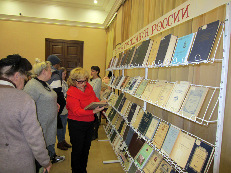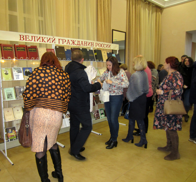 В фойе филармонии работали разнообразные выставки: художественные – «Частная коллекция» и «Павлов глазами детей», выставка коллекции насекомых. Библиотека имени Горького подготовила книжную экспозицию «Великий гражданин России». На выставке были представлены книги, рассказывающие о рязанском периоде жизни выдающегося ученого, его учебе в Санкт-Петербургском университете и работе. Особое место на выставке заняли труды И.П. Павлова, отражающие основные этапы его научной деятельности, среди которых были прижизненные издания.