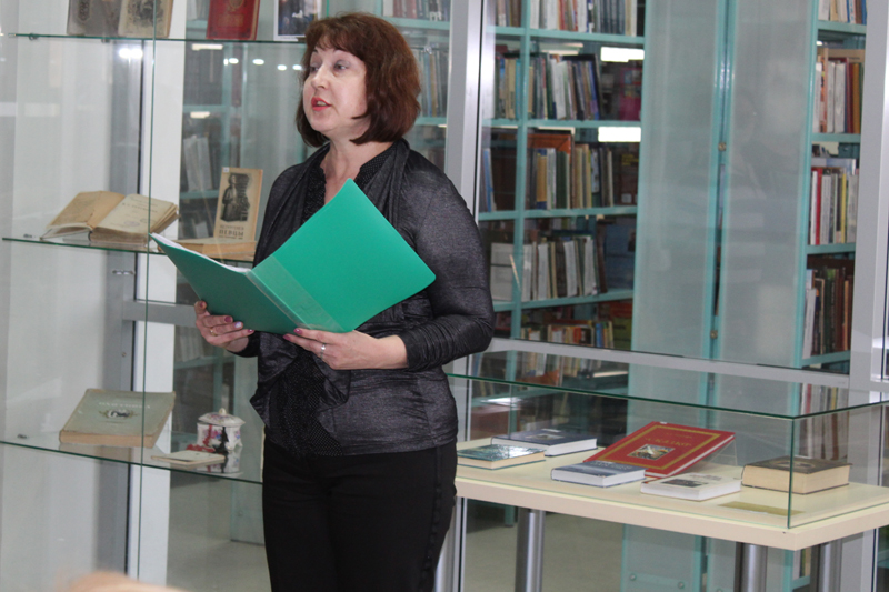 С материалами выставки и творческим путем писателя гостей познакомила главный библиотекарь Центра книги и чтения Ирина Леонидовна Сорокина.