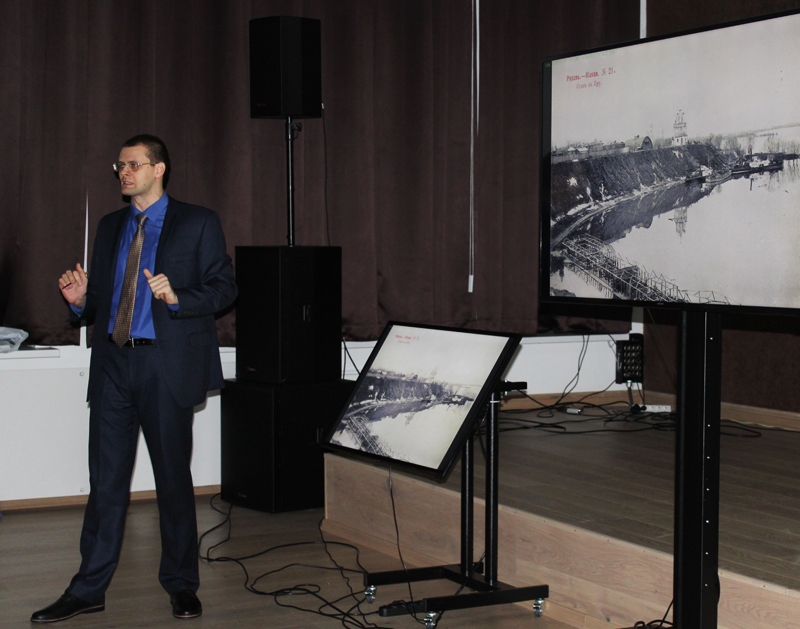 Старший преподаватель кафедры физической географии и методики преподавания географии РГУ им. С.А. Есенина Алексей Воробьев показал на примере ряда аэрофотоснимков степень заливаемости различных участков поймы Оки в окрестностях Рязани в весеннее половодье, а также обозначил особенности развития пойменных ландшафтов в предзимье и зимнее время.