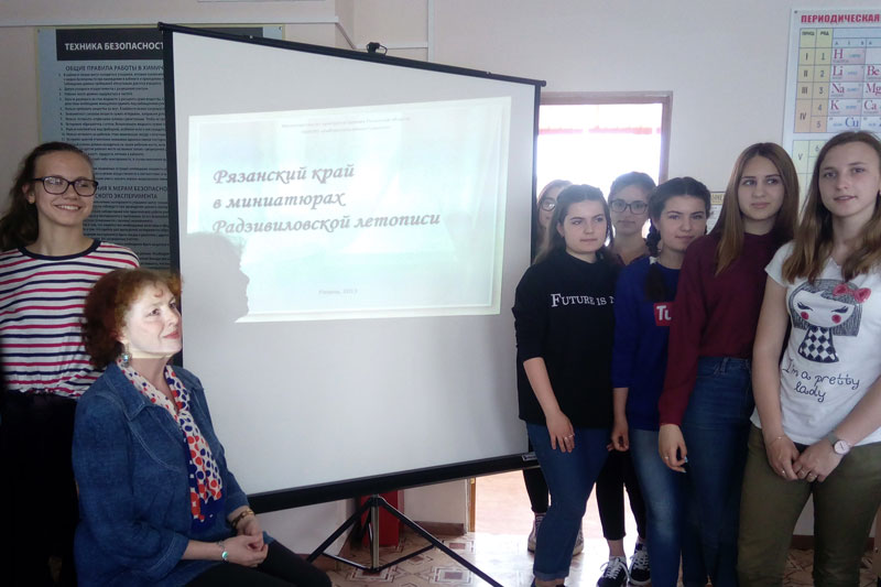 Так назвал известный российский историк и археолог А.В. Арциховский миниатюры иллюстрированной летописи конца XV века – Радзивиловской. С этими замечательными произведениями древнерусской книжной графики смогли познакомиться учащиеся средней школы № 32 поселка Солотча во время показа электронной презентации «Рязанский край в миниатюрах Радзивиловской летописи», которую представила главный библиотекарь отдела хранения библиотеки имени Горького Ирина Николаевна Леонова. Мероприятие было организовано библиотекой-филиалом № 8 МБУК «ЦБС г. Рязани» в преддверии празднования Дня славянской письменности и культуры.