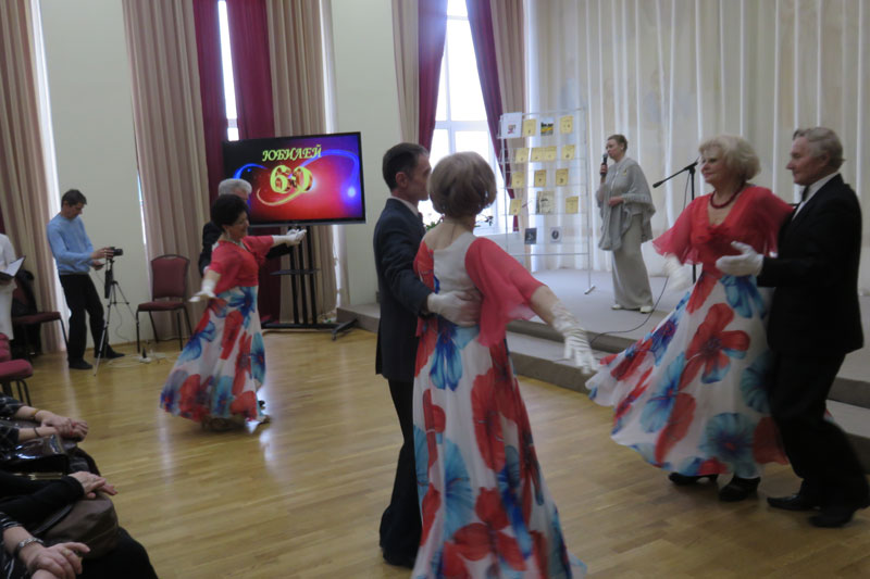 Выступление ансамбля «Приокские росы» ДК «Приокский» (руководитель – Н.И. Пономарева) с танцевальной программой на песни героини вечера, добавили новые яркие краски в общую картину праздника («Вальс», «Валена» и др.).