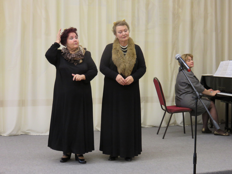 Лирики, нежности и теплоты добавили выступления солистов хора – Татьяны Петровичевой, Татьяны Ивашкиной, Елены Каревской, Людмилы Бабиной, Александра Рощина и Марины Сарахмановой. Зачарованно слушала публика песни «А снег идет», «Ты меня не оставляй», «Гусарская баллада», «Старый клен», «Под луной золотой», «Ой, туманы мои, растуманы». Бурные аплодисменты вызвало исполнение таких хитов, как «Голубка» С. Ирадье, «Дуэт кошек» Дж. Россини, «Озорные частушки» из оперы «Не только любовь» Р. Щедрина. Вот где по-особому блистали хористы, проявив не только вокальный, но и недюжинный артистический талант, безоговорочно покорив зрительские сердца.