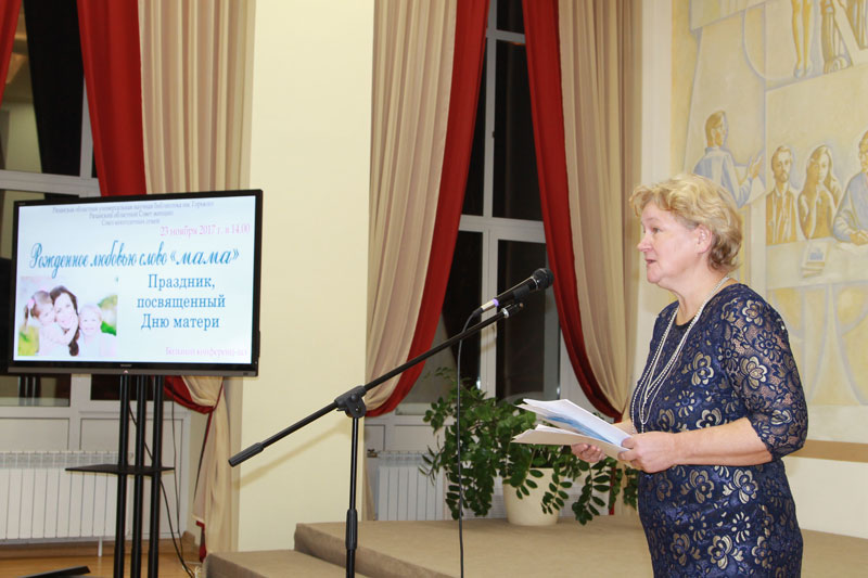 Директор библиотеки имени Горького, председатель Общественной палаты Рязанской области, председатель Рязанского областного Совета женщин Наталья Николаевна Гришина поздравила всех участников встречи и сказала: «Очень радостно, что на праздник пришло много детей поздравить своих мам». Она вручила благодарственные письма и ценные подарки многодетным мамам – Юлии Сергеевне Мерзляковой и Елене Викторовне Коноваловой. Наталья Николаевна от всего сердца пожелала всем здоровья, взаимопонимания и удачи.