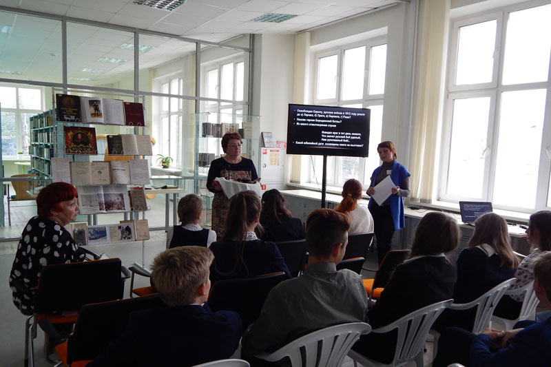 В 2017 году исполнилось 205 лет крупнейшему событию Отечественной войны 1812 года – Бородинскому сражению. Фактам того времени было посвящено интерактивное мероприятие «Великой битвы памятную дату…», организованное для семиклассников лицея №4 отделом правовой информации и образовательных ресурсов совместно с Центром редких и ценных изданий.