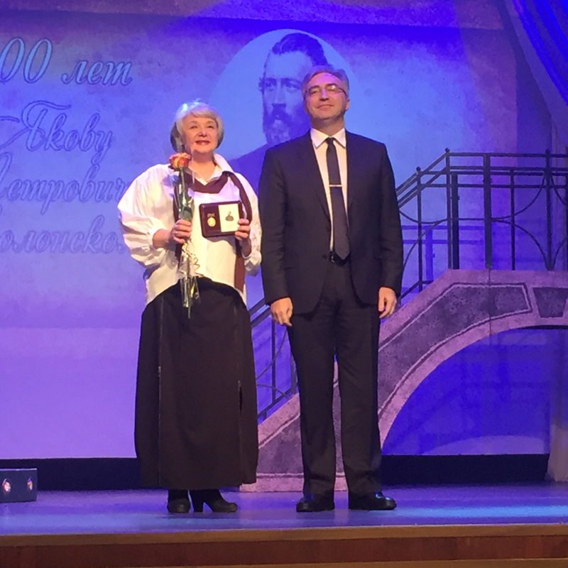 От имени губернатора Рязанской области собравшихся приветствовал министр культуры и туризма региона Виталий Попов. Министерством культуры и туризма Рязанской области в 2019 году учреждена юбилейная медаль «200 лет Якову Полонскому» (автор медали Раиса Лысенина). За многолетнюю и плодотворную работу по изучению и пропаганде творчества выдающегося поэта эту медаль получили известные деятели культуры. Первой пригласили на сцену для вручения высокой награды директора Рязанской областной универсальной научной библиотеки им. Горького Наталью Гришину. Юбилейную медаль получила также и Людмила Пронина, много лет возглавляющая работу по сохранению и продвижению наследия поэта.