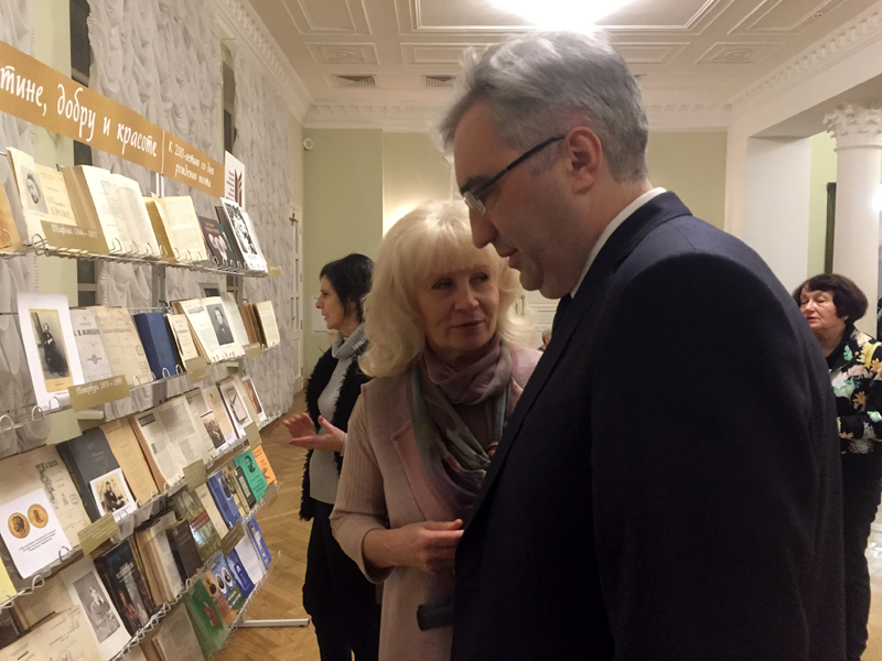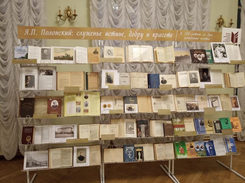 В фойе театра была развернута выставка, на которой можно было увидеть прижизненные собрания сочинений Я.П. Полонского, первые публикации его произведений в журналах XIX века, монографии конца XIX – начала XXI в., посвященные жизни и творчеству писателя. Многих заинтересовали материалы научных конференций и фотокопии уникальных документов, переписка, дневники и воспоминания современников нашего знаменитого земляка. Украсили выставку иллюстрации к лирическим произведениям поэта, выполненные учащимися школы № 7.