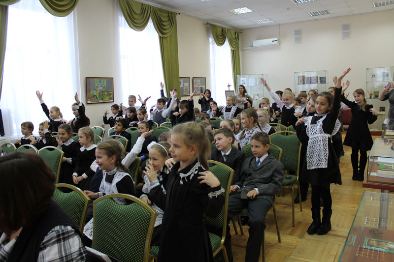 Ведущая Елена Пронюшкина в непринужденной живой манере познакомила школьников с жизнью и творчеством композитора, активно вовлекая ребят в познавательный процесс.