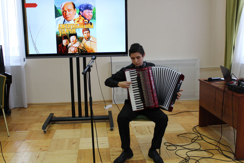 В молодежной секции клуба «ОЛИМП» состоялась концертная программа «Творчество с улыбкой», посвященная известному российскому композитору Геннадию Гладкову. Ее провели преподаватели и учащиеся ДШИ № 1 г. Рязани. Гостями встречи стали учащиеся СОШ № 11, с которой библиотека активно сотрудничает.