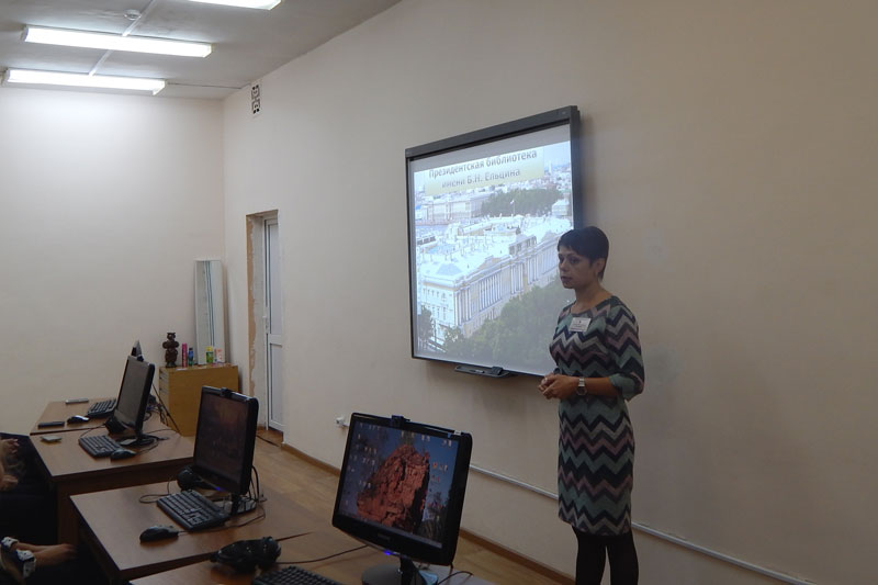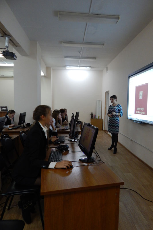 Мероприятие проходило в форме практического семинара, во время которого участники самостоятельно работали на портале библиотеки, выполняя за сотрудником все задания. Семиклассники смогли получить представление о богатом фонде учреждения, просматривая электронные копии Остромирова Евангелия XI века, специального экземпляра Конституции РФ, который используется при инаугурации Президента России, документов, отражающих исторические особенности субъектов страны в разделе коллекций «Регионы России».