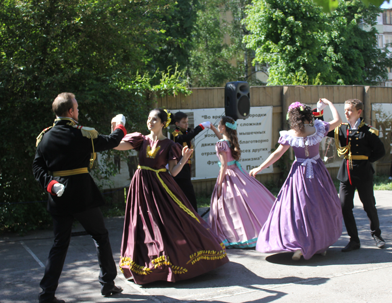 Голубая, лиловая, синяя, белая расцвела сирень в усадебном саду и собрала гостей на праздничное мероприятие. У всех посетителей в одежде и аксессуарах присутствовали оттенки сиреневой цветовой гаммы. Главные гости торжества – участники студии исторического танца «Белый балъ» кружились в вальсе, танцевали польку и кадриль: дамы в платьях цвета сирени, а мужчины в мундирах.