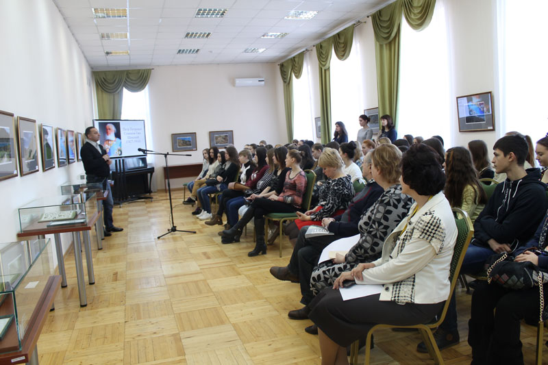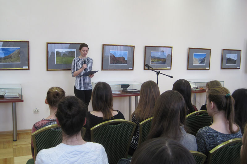Студенты выслушали информацию о книжной экспозиции, посмотрели видеосюжет по итогам экспедиций 2014–15 гг., познакомились с экспонатами выставки.