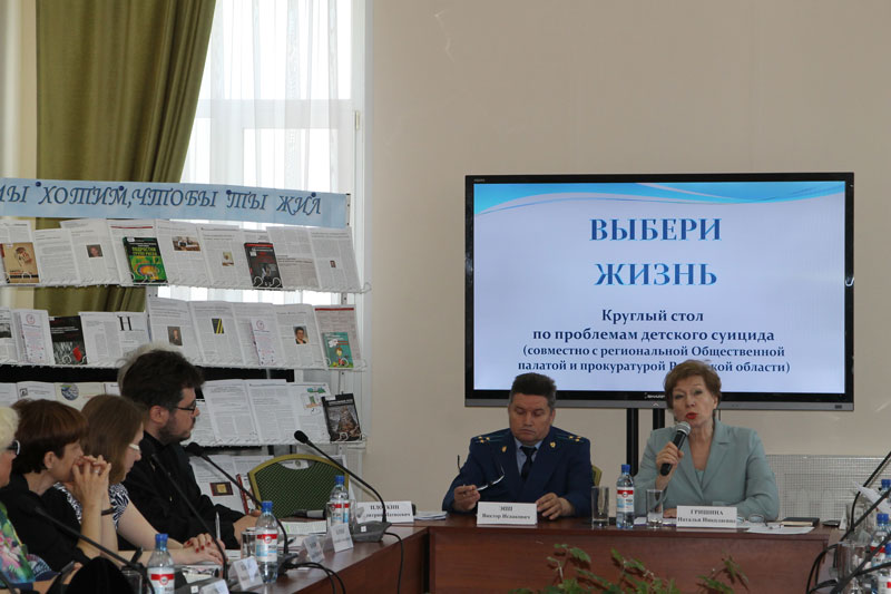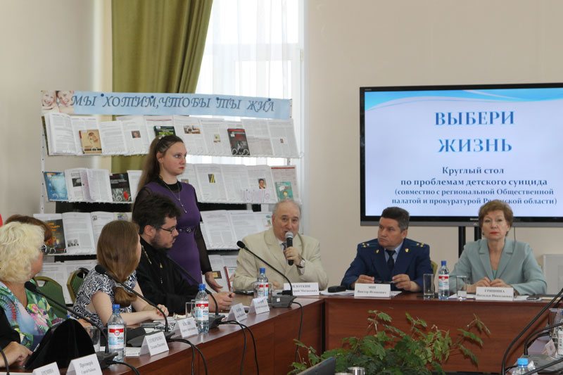 В библиотеке состоялся круглый стол под названием «Выбери жизнь», посвященный проблеме детского и подросткового суицида. Организаторы дискуссионной встречи: региональная Общественная палата, прокуратура Рязанской области, библиотека имени Горького.