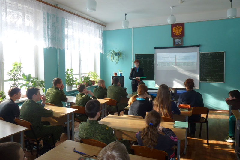 Рассказ о достопримечательностях города — о разводных мостах, памятниках, садах, парках, соборах; об улицах, связанных с именами А. С. Пушкина, Ф. М. Достоевского, Н. В. Гоголя, А. А. Ахматовой, С. А. Есенина, — сопровождался видеопрезентацией. Литературное путешествие украсили стихи известных поэтов о прекрасном и величественном Санкт-Петербурге и отрывки из кинофильмов. Школьники внимательно слушали увлекательный рассказ, ведь им скоро предстоит писать сочинение по этой теме.