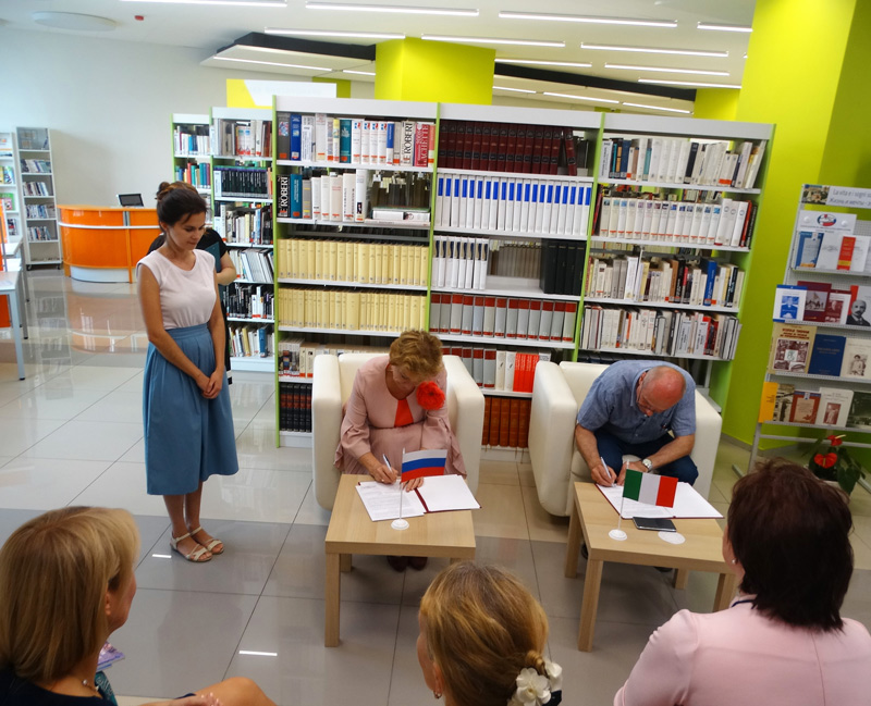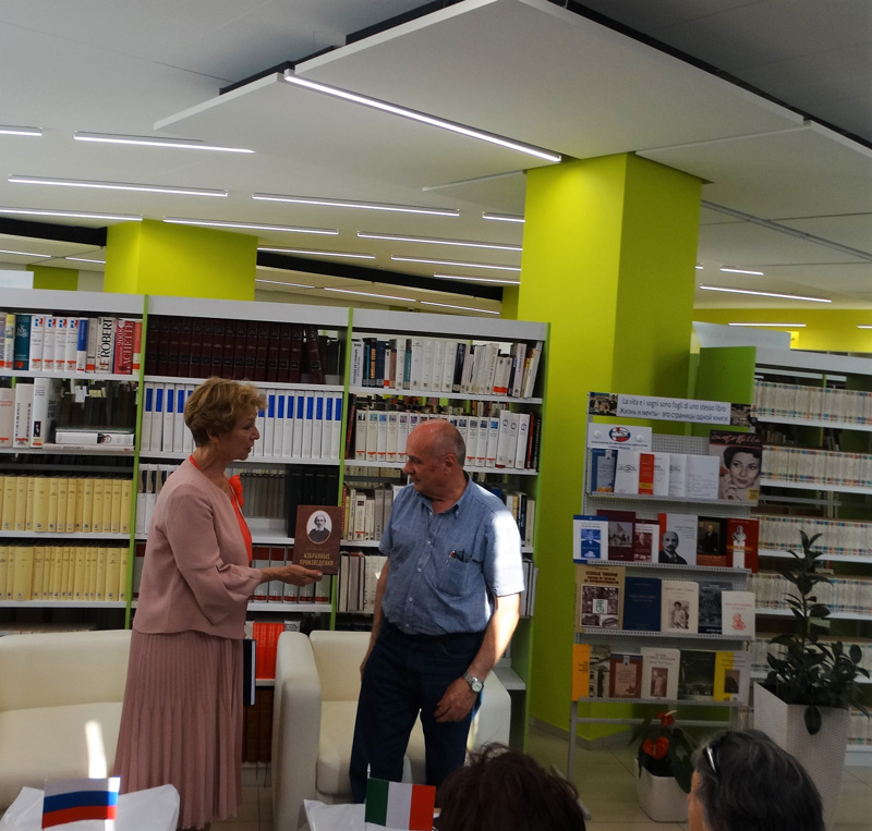 Господин Бернарди поделился дальнейшими планами о создании русского библиотечного фонда в библиотеке города Ченто и представил привезенные из Италии книги, некоторые из которых сопровождены дарственными надписями авторов.