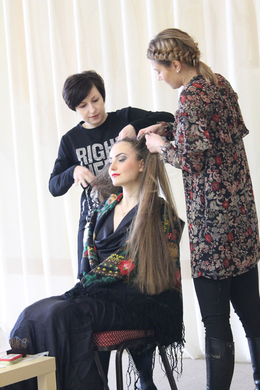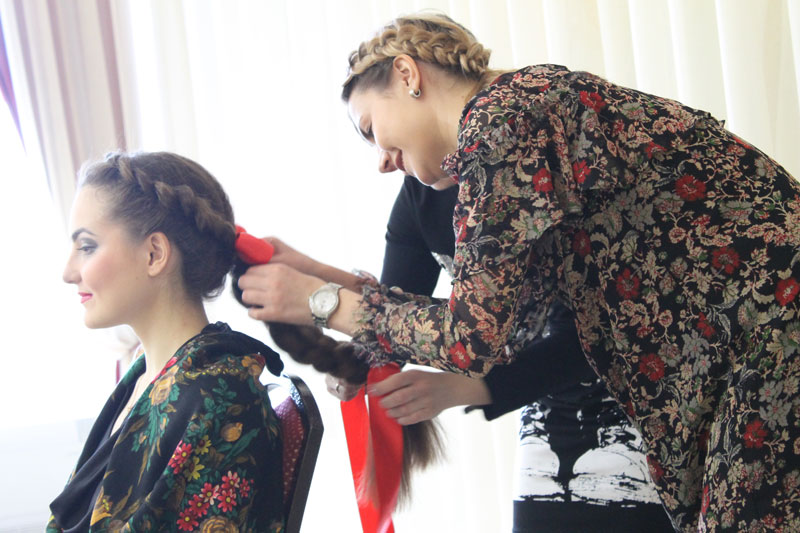 На лекцию также пришли мастера студии Олега Володина. Во время всего мероприятия они делали традиционные православные прически приглашенной модели. Эта демонстрация вызвала большой интерес у гостей библиотеки.