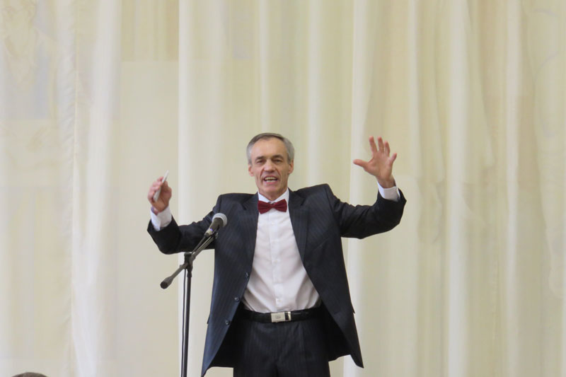 Удивительно проникновенно звучали стихи поэта в исполнении сотрудника музыкального колледжа Вячеслава Владимировича Шапошникова. Он читал самые популярные: «Гой ты, Русь, моя родная…», «Не бродить, не мять в кустах багряных», «Мне осталась одна забава…», монолог Хлопуши («Я хочу видеть этого человека») из поэмы «Пугачев» и другие.