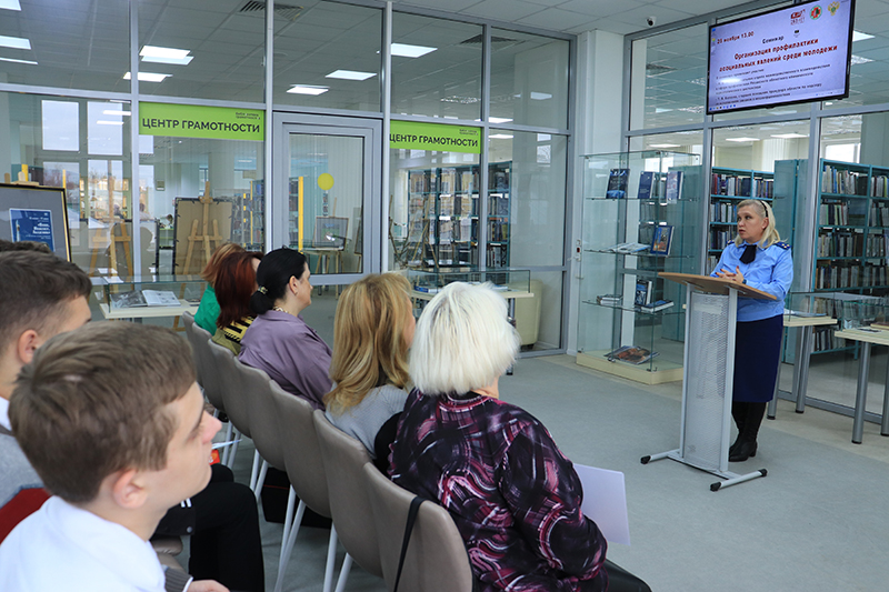 В ходе антинаркотического месячника в библиотеке состоялся обучающий семинар для педагогов и учащихся с участием сотрудников Рязанского областного клинического наркологического диспансера и Рязанской областной прокуратуры.