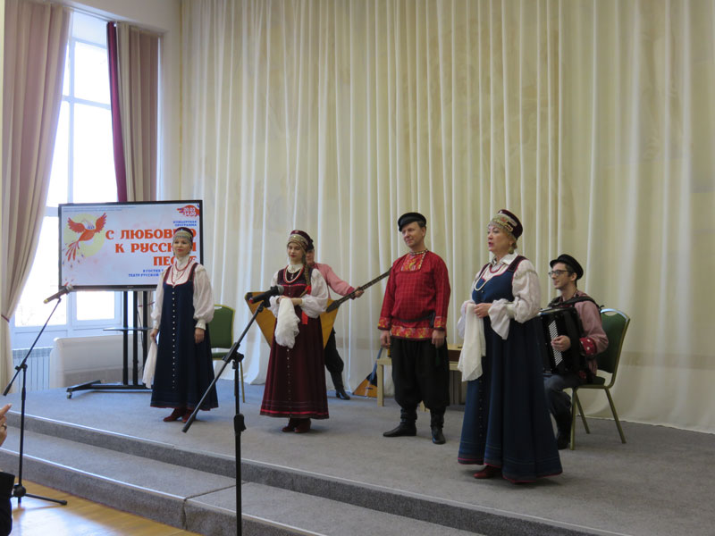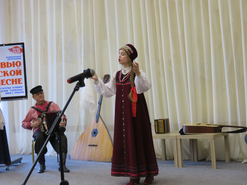 На очередной встрече участников клуба «ОЛИМП» театр народной песни «Узорочье» МКЦ г. Рязани (художественный руководитель Надежда Кольцова) выступил с концертной программой «С любовью к русской песне». Концерт был приурочен к Году культурного наследия народов России.