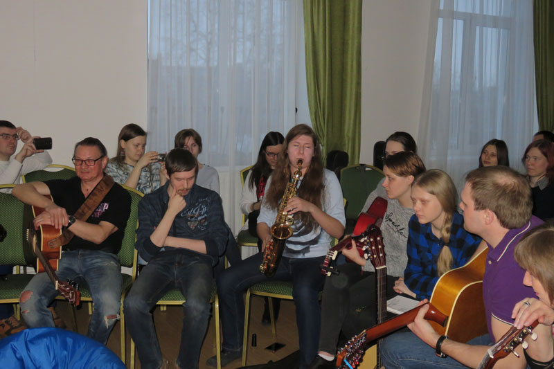 На вечере присутствовал рязанский поэт и бард Сергей Мареевич Белоусов. Его композиции полны любви к нашему городу, в них воспеты местные достопримечательности. Во время встречи он исполнил песню «Рязанская весна». Солистка вокального ансамбля «Мама Jazz» Елена Юркевич спела песни «Позови меня с собой» из репертуара Татьяны Снежиной и «Журавль по небу летит» из кинофильма «Бумбараш».