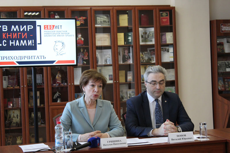 21 февраля 2018 года в Рязанской областной универсальной научной библиотеке им. Горького состоялась пресс-конференция, посвящённая празднованию 160-летию учреждения культуры. С журналистами пообщались министр культуры и туризма региона Виталий Попов и директор РОУНБ им. Горького Наталья Гришина.