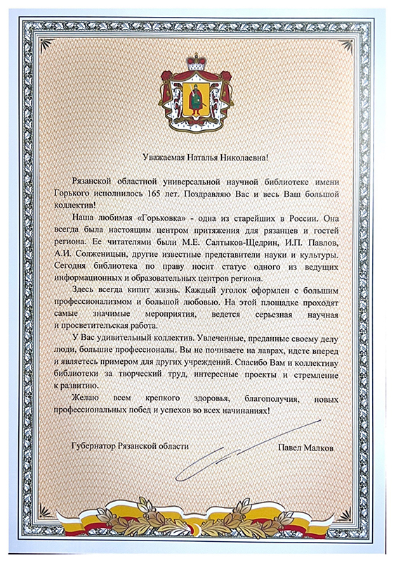 Наступивший 2023 год – особенный для Рязанской областной универсальной научной библиотеки имени Горького. Нашей любимой «Горьковке» – 165 лет.
