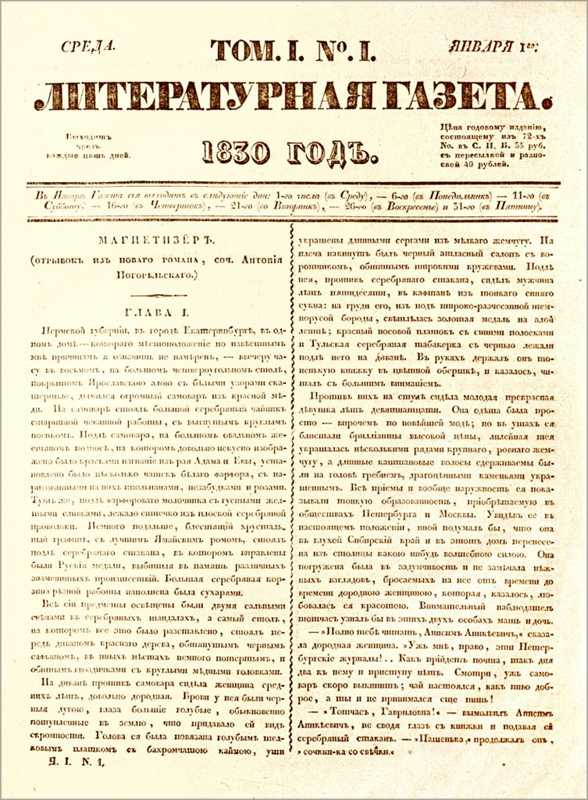 Первый номер газеты, основанной группой литераторов при участии Александра Пушкина, увидел свет 1 января 1830 года в Санкт-Петербурге. Первоначально газета выходила один раз в пять дней, ее главным редактором был поэт Антон Дельвиг. Десять выпусков редактировал Пушкин. Несмотря на запрет публикаций политических известий, газета затрагивала вопросы политики в критических статьях, рецензиях и полемических заметках. В августе 1830 года за публикацию материалов, связанных с французской революцией, Дельвигу было запрещено редактировать газету. Новым редактором стал Орест Сомов.