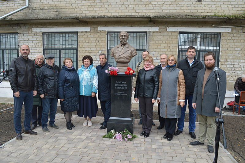 Начались торжества 12 октября 2022 года в Верхнем парке г. Рязани на Аллее путешественников. Здесь собрались все те, кто не равнодушен к истории рязанской земли и славным ее представителям, к которым относится и Михаил Иванович Венюков – географ, путешественник, военный разведчик и публицист. В этот день предстояло открыть бюст Михаила Венюкова. Автор памятника – московский скульптор Евгений Шевченко. Торжественную церемонию открыла министр культуры Правительства Рязанской области Марина Кауркина, которая напомнила присутствующим о замечательных эпизодах из жизни рязанского ученого-географа. Выступали председатель Рязанской городской Думы Татьяна Панфилова, представители Хабаровска, Москвы, села Никитина – родины юбиляра. О путешествиях, проведенных Рязанским отделением Русского географического общества по маршрутам Венюкова, рассказал Герой России Михаил Малахов. Согласно церемониалу, перед изображением Венюкова, генерала Русской армии, прошел торжественный караул из курсантов Рязанского училища ВДВ. Затем рязанцы возложили цветы к основанию памятника.