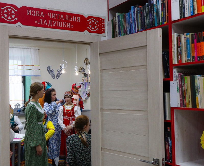 Открытое библиотечное пространство оборудовано современной мебелью с функциональными зонами: детский зал «Изба-читальня Ладушки», зал отраслевой литературы «Горница», зал художественной литературы «Традиция», зал «Мастерская Марьи-искусницы».