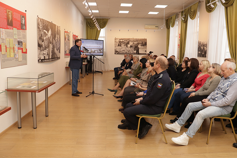 В заключение церемонии открытия автор выставочного проекта А.А. Богданов сделал краткий обзор экспозиции и поблагодарил Наталью Николаевну Гришину за возможность представить этот проект на одной из лучших выставочных площадок города Рязани.