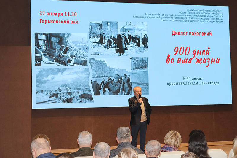 27 января, в День воинской славы России, в Рязанской областной универсальной научной библиотеке имени Горького прошло памятное мероприятие, посвященное 80-летию прорыва блокады Ленинграда. Мероприятие подготовлено при поддержке Правительства Рязанской области, совместно с Общественной палатой Рязанской области, Рязанским областным Советом женщин, Рязанской областной общественной организацией «Жители блокадного Ленинграда».