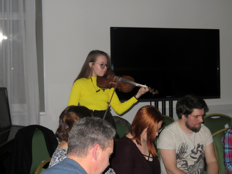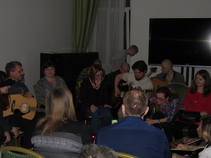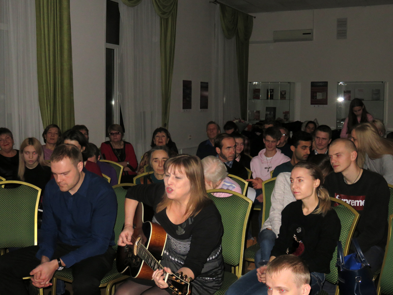 Стихи, песни, инструментальные произведения создавали в малом зале «Горьковки» особую атмосферу. Алексей Занегин затронул сегодня тему родины, деревни, прочитав стихи собственного сочинения. Вячеслав Пасиков исполнил песню «Я не сдамся без боя» на украинском языке. Екатерина Макинтош и Павел Шахватов пели авторские песни, а Дмитрий Новоселов – из репертуара легендарной группы Scorpions. Елена Юркевич исполнила песню группы «Машина времени» «За тех, кто в море», и ей подпевал весь зал. Почти все песни сопровождались звучанием скрипки и губной гармошки. Не осталась без внимания любовная лирика: Юрий Котельников со своей спутницей прочитали балладу о любви. Вечер оставил после себя теплые и светлые воспоминания.