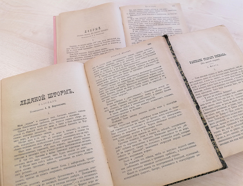 На выставке читатели смогут увидеть второе издание полного собрания сочинений К. М. Станюковича, вышедшего уже после его смерти в издательстве А. Ф. Маркса, а также отдельные публикации писателя, в том числе и в журналах. Взяв в руки книгу, вы погрузитесь в удивительную морскую жизнь, полную отваги, самопожертвования, любви к родине и людям, которую так замечательно передал мастер слова.