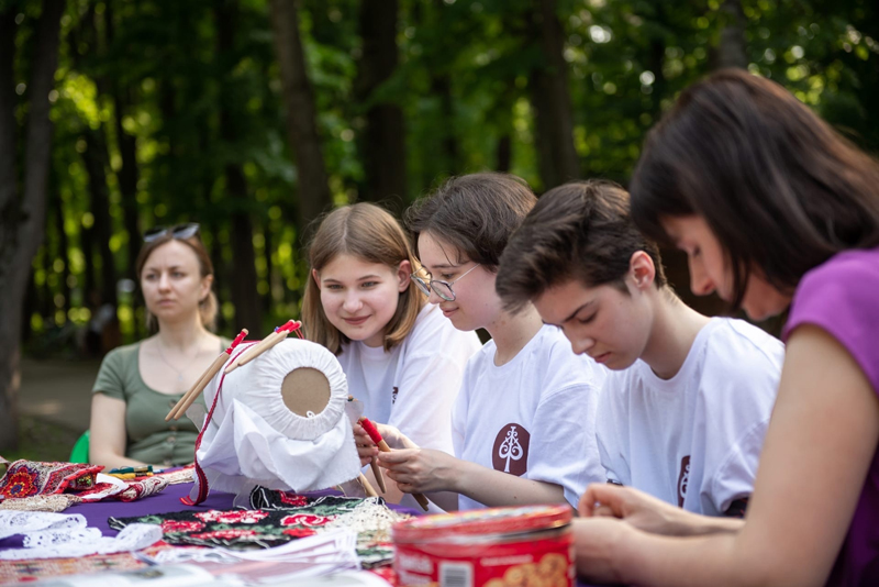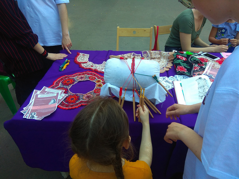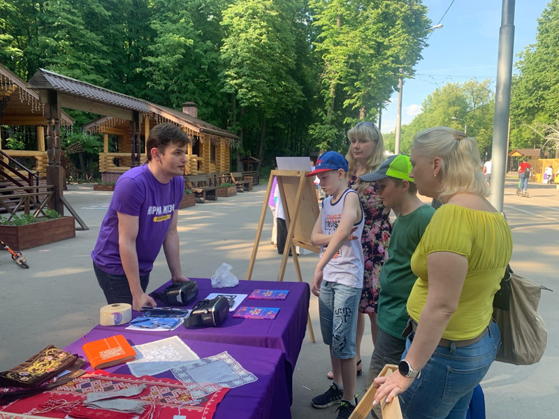 На площадке волонтеров культуры и Высшей школы народных искусств все желающие могли попробовать свои силы в вышивании брошей, браслетов, закладок для книг или в плетении кружева на коклюшках. Волонтеры науки предоставили возможность участникам погрузиться в мир виртуальной и дополненной реальности.