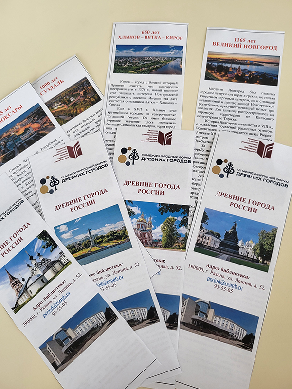 В преддверии VII Международного форума древних городов сотрудники библиотеки провели уличную акцию, в ходе которой раздавали жителям и гостям города буклеты с информацией о городах-юбилярах 2024 года.