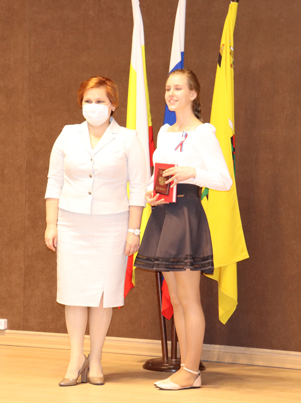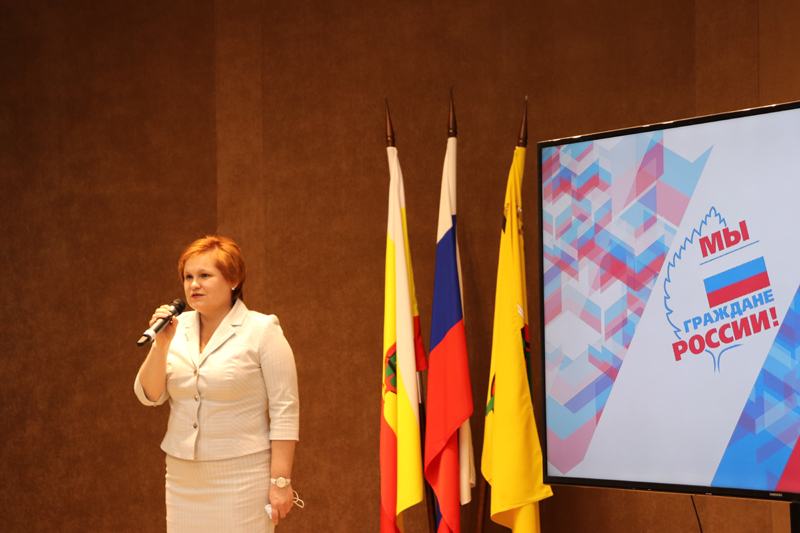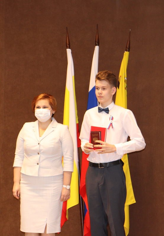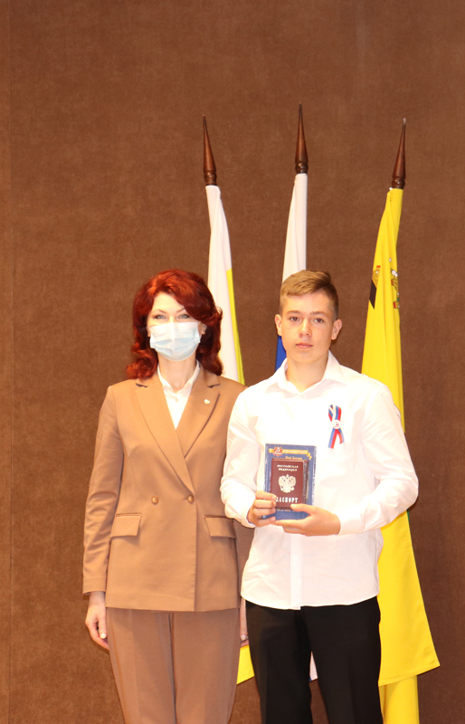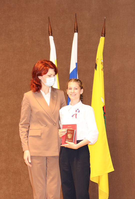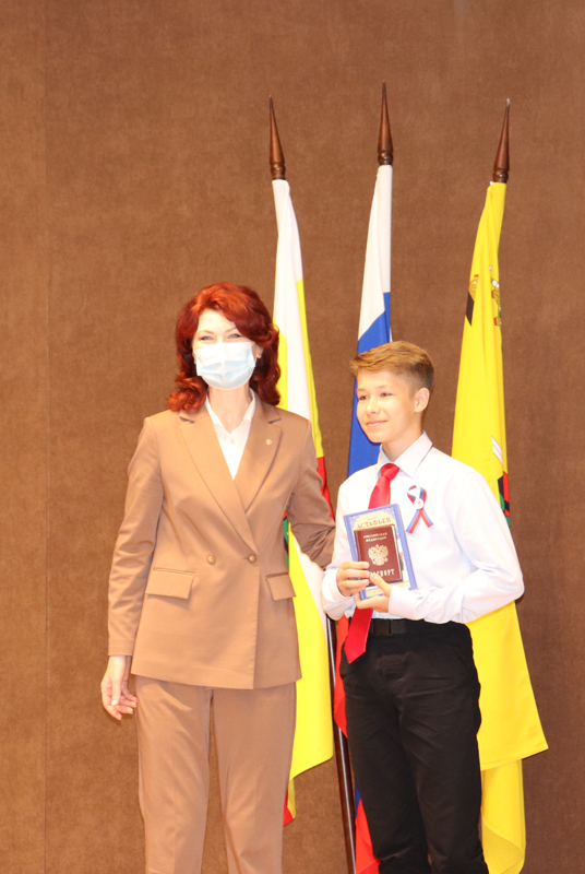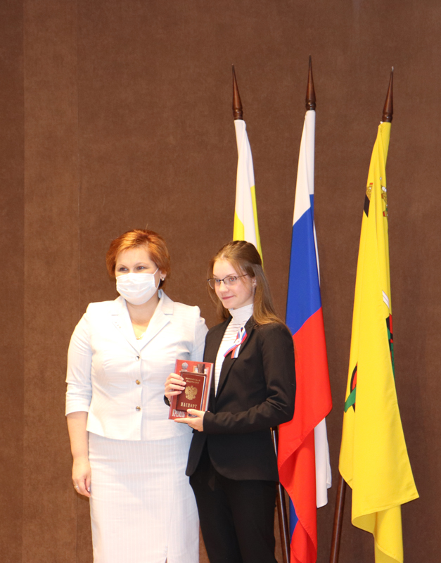 Для приветственных слов и вручения паспортов участникам были приглашены глава администрации города Рязани Елена Борисовна Сорокина и уполномоченный по правам ребенка в Рязанской области Анжелика Владимировна Евдокимова.