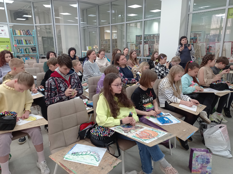 Большим подарком для юных художников стал мастер-класс от В.И. Макарова. Вячеслав Иванович предложил ребятам создать эскиз-идею, нарисовав фантазийный дом для проживания различных насекомых и животных. Представив себя архитекторами, дети с большим энтузиазмом приступили к «проектированию». В результате получился необычный и разноцветный город.